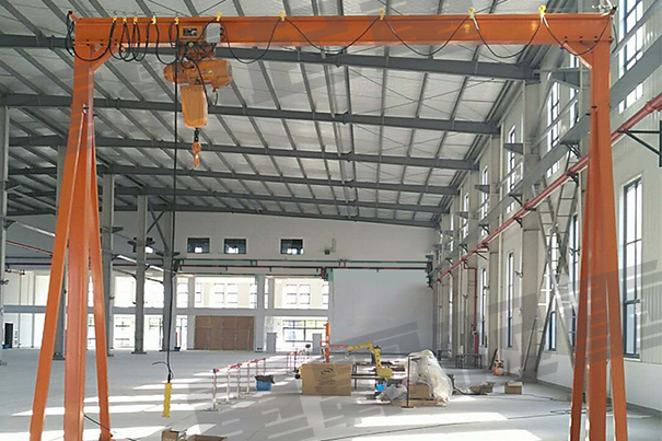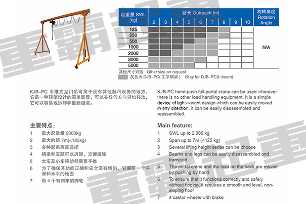 輕便式龍門起重機帶有4個萬向輪,無需軌道,可以自由位置移動,適用于小噸位物料輸送,方便操作,經(jīng)濟性好。