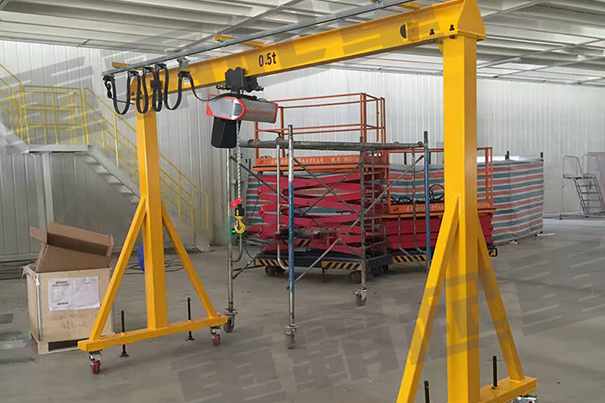 輕便式龍門起重機帶有4個萬向輪,無需軌道,可以自由位置移動,適用于小噸位物料輸送,方便操作,經(jīng)濟性好。
